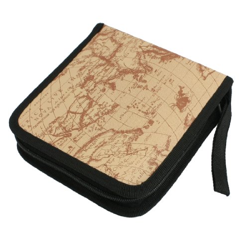 Gino Light Brown Global Map Printed 40 Pieces Capacity DVD CD Case Bag Holder