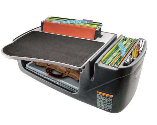 With capacity for 50 or more hanging files, this desk is a must-have for mobile workers who need a great deal of filing space to keep papers organized and efficient. A special opening in the top of the desk creates a second storage area for hanging file folders. The file folders face the driver which makes it easier to see and access. The remaining top surface of the desk is covered with the rubber Non-skid material ? this ensures that a laptop, briefcase, PDA, or cell phone will keep from sliding while the vehicle is in motion. The large storage area is great for office tools and accessories and also for keeping a laptop hidden out-of-sight. Additional storage compartments hold small supplies such as pens, maps, etc. This desk model is ideal for those needing quick access to files and mobile equipment and at the same time needing work space to write. Color: Charcoal Dimensions: 26? from back of desk to the front (toward the dash) Non-skid area is 10? x 17? 11? in height a t the widest part of the plastic base Storage area under the desk: 13 ?? W x 12? D x 5? H Hanging file space: 3 ?? W x 9? D x 12? across for standard size handing file folders Additional file storage area provides 4 ?? of additional room for handing file fo.
