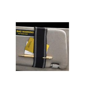 The Black Visor Band hooks to the edges of your visor creating a tight band where you can store pens notepads mail or sunglasses. This storage band fits on every sized visor it has been tested on; its elastic design allows for variation in visor sizes. The bands strong hooked edges ensure that only one side of your visor is covered so the inset mirror on the other side of your visor remains undisturbed. Black Visor Band Features Blends nicely with black or gray interiors. Holds pens mail notes sunglasses or anything you need within arms reach in your car. Hooks to your visor instead of wrapping around it so you can always see your inset mirror. Fits securely to most visors due to its elasticity. Also comes in brown .