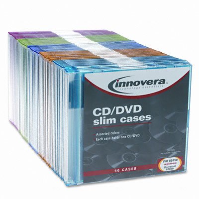 Innovera 85850 CD/DVD Polystyrene Thin Line Storage Case, Assorted Colors, 50/Pack