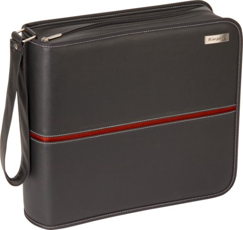 The Targus Matrix 240 Capacity CD/DVD case is designed to accommodate the increasing amount of music stored on computer based media players. With space to store up to 240 CDs or DVDs, the Matrix case is fabricated of high quality, durable Koskin with a fashionable red nylon contrast stripe and interior lining material. A robust nylon zipper provides added security for valuable contents so no media is lost during travel. Both compact and functional, Matrix addresses the storage requirements of the electronics enthusiast.