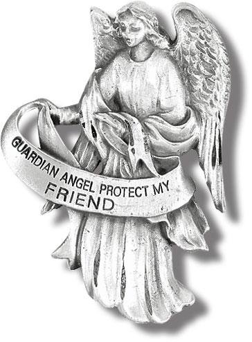 Guardian Angel â?" Protect My Friend Auto Visor Clip Made of Genuine Pewter with Hand Engraved, Antique Finish, Individually Carded